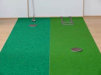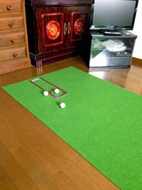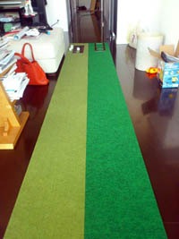 モノづくりのこだわりに驚いています。 (神奈川県のI様:30cm×4m×2枚組 COMBOパターマット) 『早速使用してみましたが、今までのパターマットとは速さが全く異なり、特にBENT-TOUCHの方はよく行くゴルフ場のグリーンにとても近い感じです。 本当は5メートルがよかったのですが、環境がそれを許してくれず、やむなく4メートルを購入しました。 それでも、ゴルフショップなどで売っているパターマットに比べ軽く1メートル以上長いため、今までにない距離で妻と二人で楽しく練習に使っています。この1メートルの差が、実際のグリーンで活きる筈と信じて練習しています。 また、我が家はマットを敷いたままにできない環境なので、都度丸めて段ボールにしまっているのですが、巻き癖が全然付かず素晴らしいの一言です。この点も、今までのパターマットと比べると雲泥の差ですね。モノづくりのこだわりに驚いています。』 |